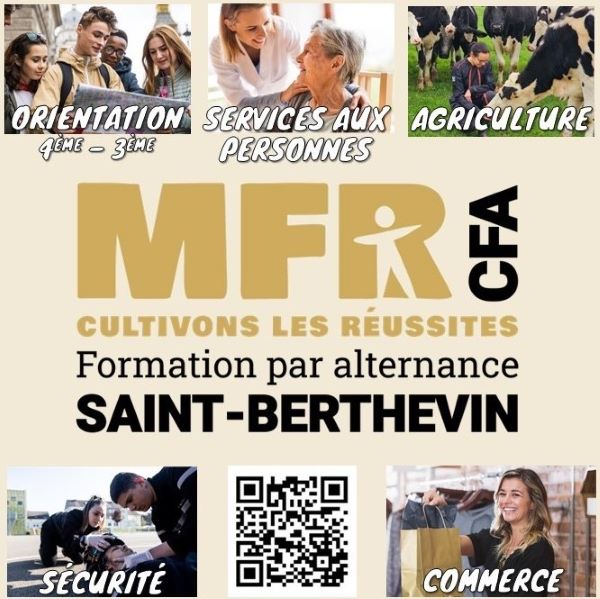 Depuis plus de 50 ans, la Maison Familiale Rurale (MFR) de Saint-Berthevin accompagne les jeunes et les adultes dans leur parcours de formation. Située en Mayenne, notre établissement est un lieu d’apprentissage où la théorie rencontre la pratique grâce à un système unique d’alternance. Nous proposons des formations variées dans des domaines tels que l’agriculture, l’horticulture, les services à la personne et la sécurité.